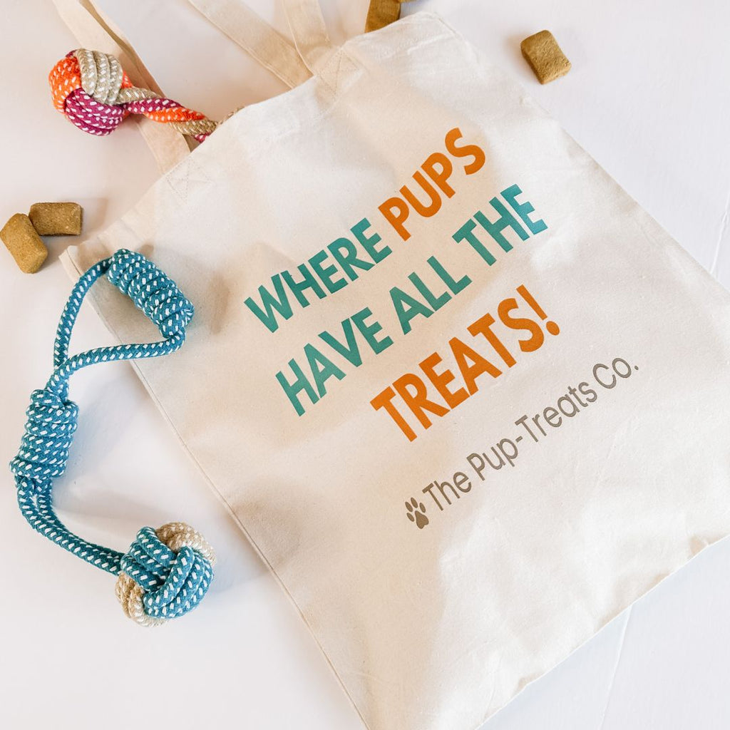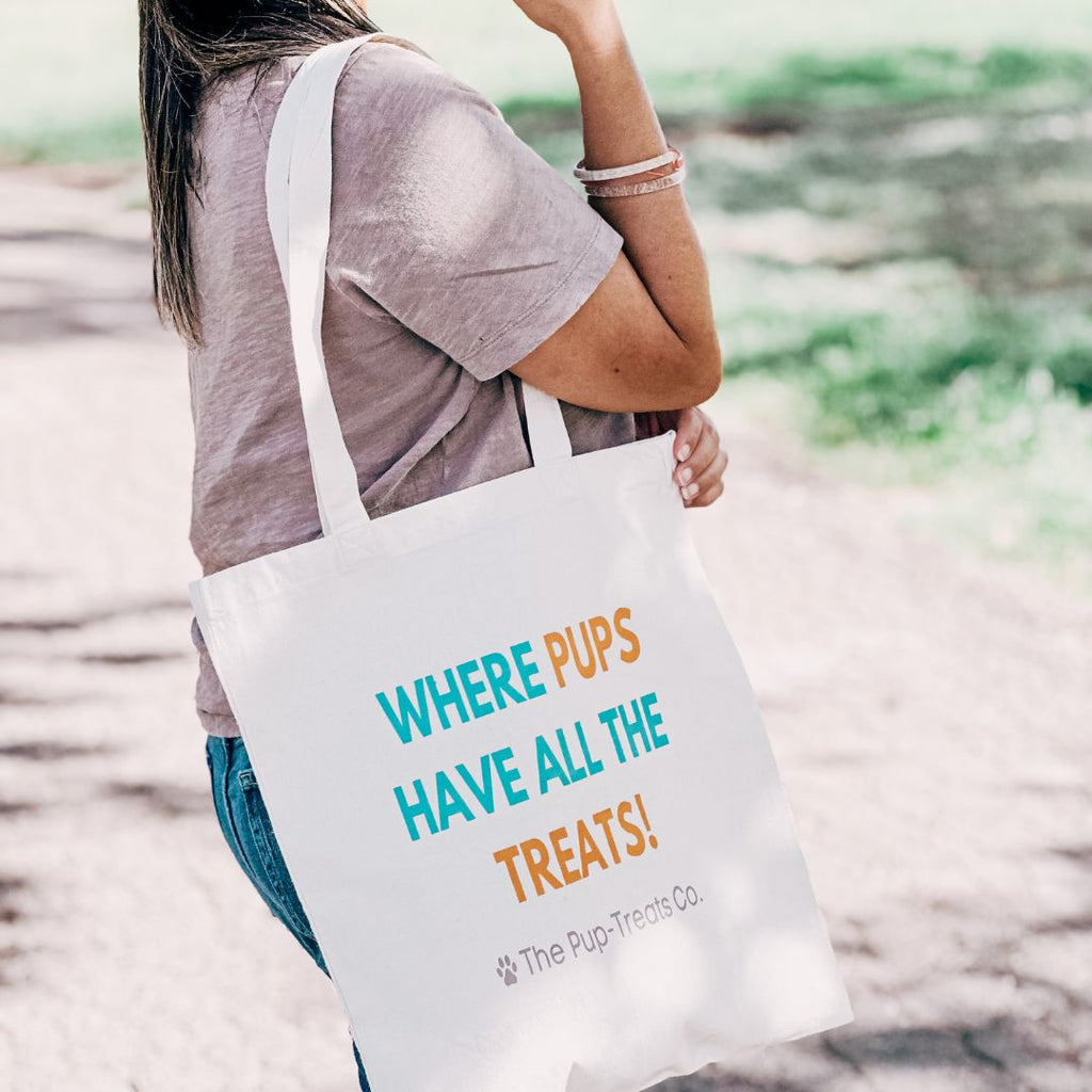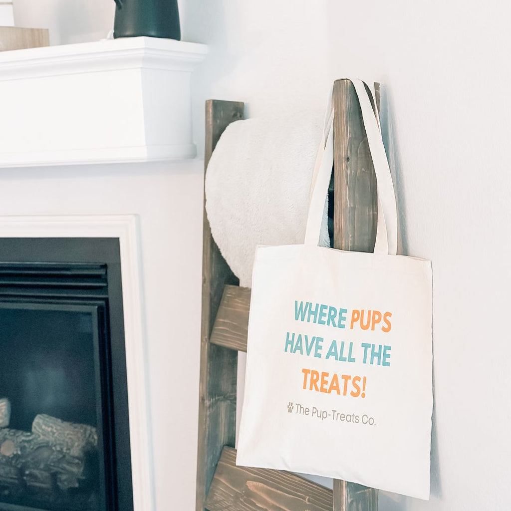 Introducing our stylish tote bag that is perfect for any dog lover out there! Made from high-quality materials, this tote bag is not only durable but also eco-friendly. Featuring a charming print that says "Where Pups Have All The Treats," this tote bag is sure to turn heads wherever you go.
