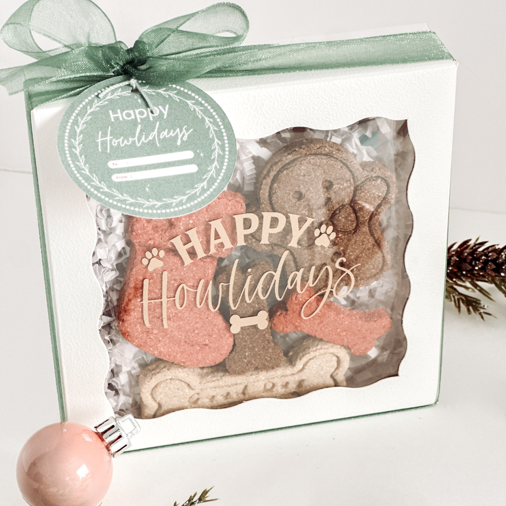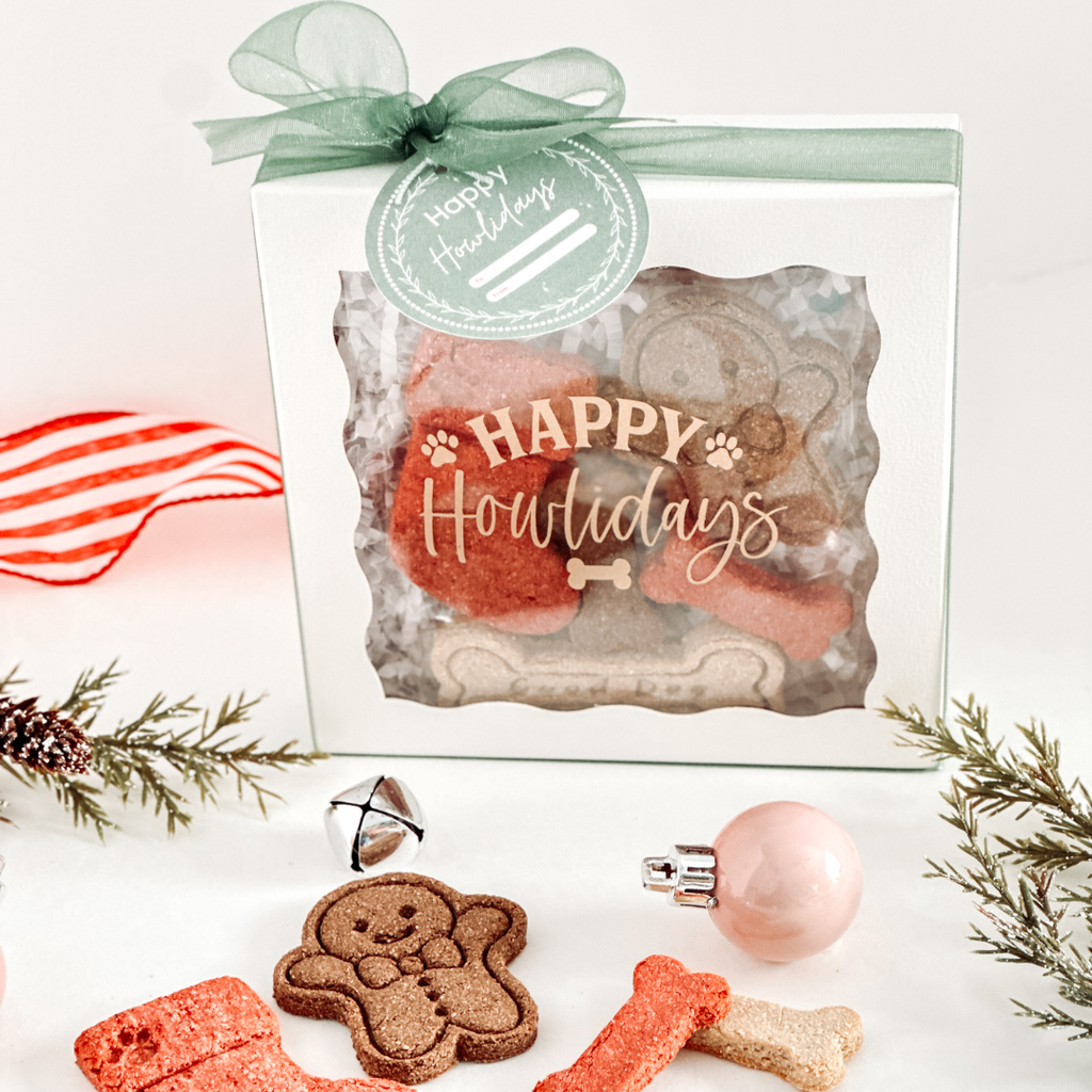 Spoil your pup with our Happy Howlidays Box — 5 festive, all-natural treats in a gift-ready box, baked with love and holiday cheer.