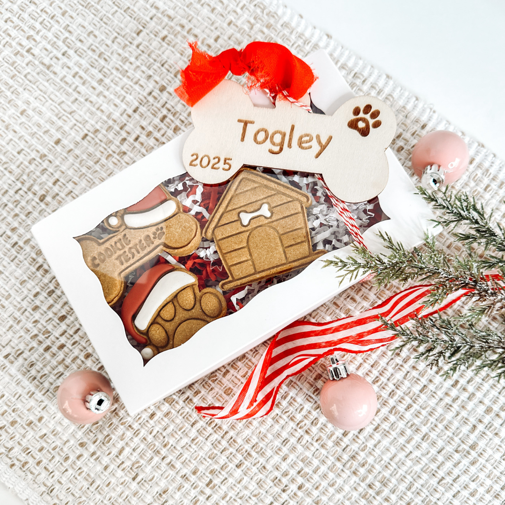 And the best part! Your gift set includes a custom dog bone ornament with your pup’s name, ready to hang on the tree and treasure year after year. 🎄🐾