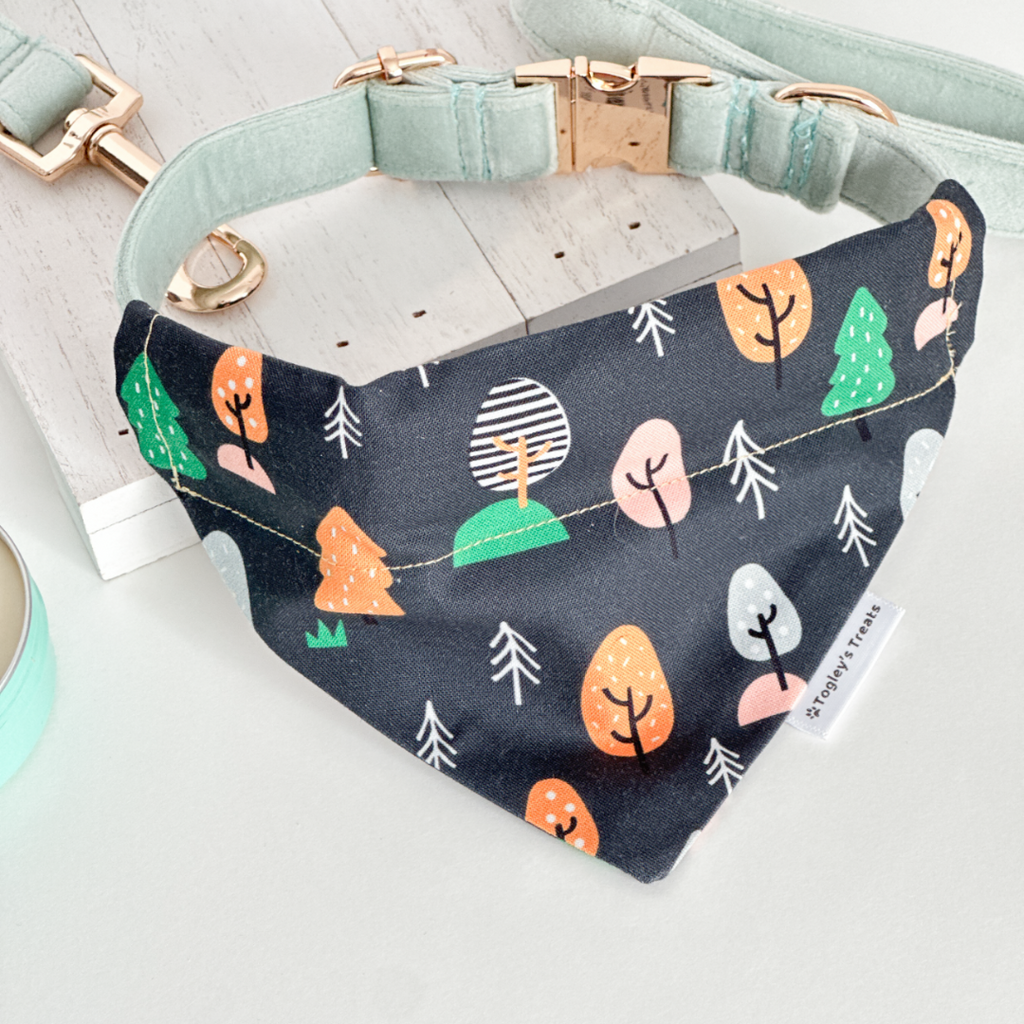 Level up your pup’s style with our Into the Woods Slip-On Bandana! 🌲🍂 Made with 100% breathable cotton, this bandana is designed for everyday comfort and woodland charm. Forget the hassle of tying—just slide it right onto your dog’s collar and go. It stays perfectly in place, no slipping, no fuss, just tail-wagging adventures.